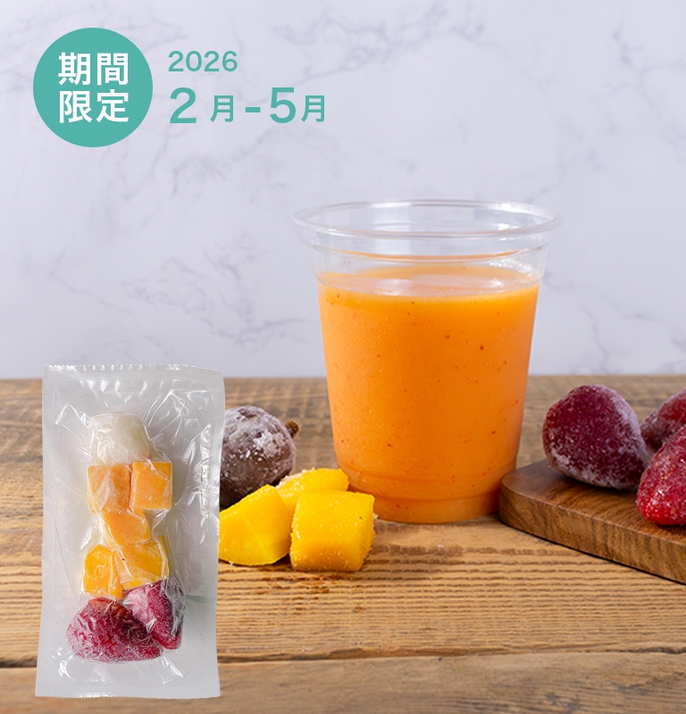フレッシュジュースは定番商品に加え、4ヶ月に1度切り替わる期間限定商品やイベントに合わせた企画商品などがございます。